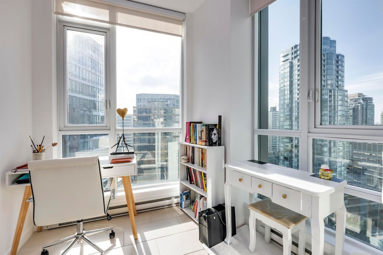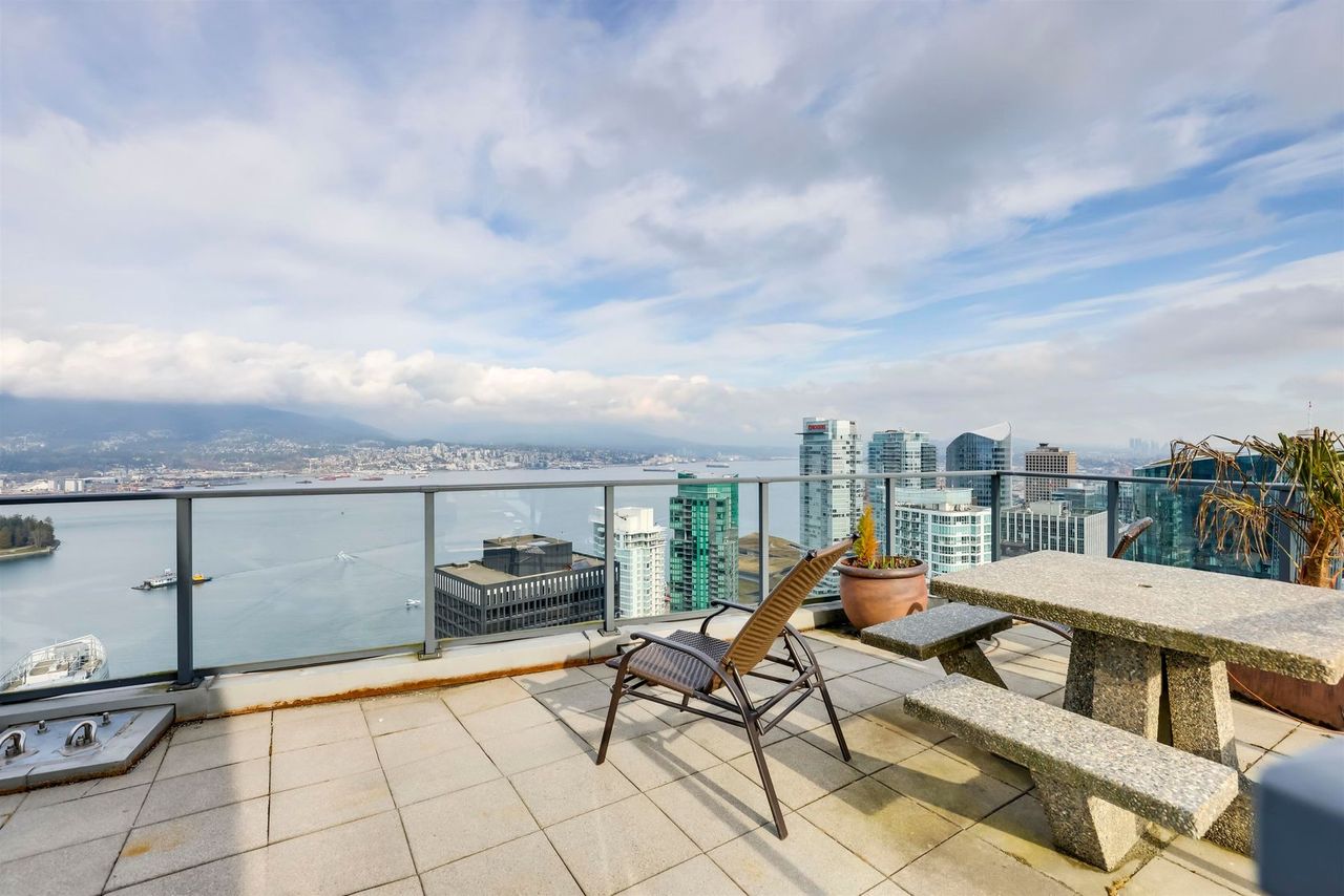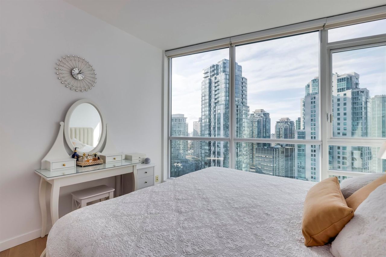 Welcome to The Melville, one of the landmarks in Coal Harbour. This spectacular corner unit on the 23rd floor offers a spacious area of 722 sqft with one bedroom, a solarium, a flex room, one parking stall and one storage locker. The home features an open kitchen with granite countertops, stainless steel appliances and a gas range, 9-foot ceilings, huge windows and a solarium that can be used as an extra room. The building offers 24/7 concierge, party room, media room, gym, sauna, impressive rooftop pool and garden area with 360 views of Vancouver. Walking distance to Pacific Centre Shopping Mall, Skytrain, Harbour Green Park, Coal Harbour Marina, Stanley Park and all world-class restaurants.