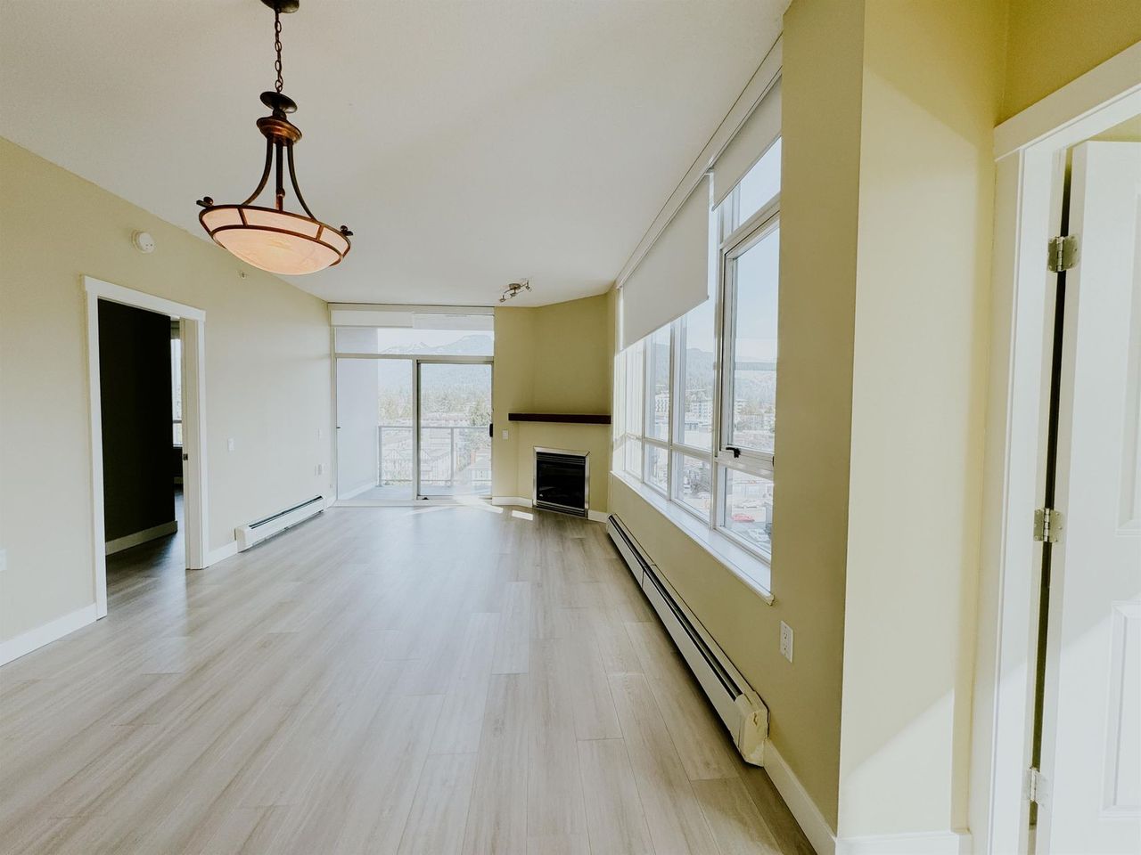 Located in the vibrant central Lonsdale neighborhood, this modern and highly efficient corner unit offers ample space for relaxation and unwinding. Boasting an attractive contemporary design with a gracious fireplace, the residence is flooded with natural light, creating an inviting ambiance ideal for those seeking a comfortable and stylish urban lifestyle. Brand new washer/dryer and new blinds The kitchen is equipped with sleek countertops and brand-new S/S appliances, including a 5-burner gas stove, perfect for culinary enthusiasts. Positioned in one of North Vancouver's most sought-after locations, the Symphony complex presents exceptional living and investment opportunities with promising growth potential. Two parking spots, visitor parking & a storage