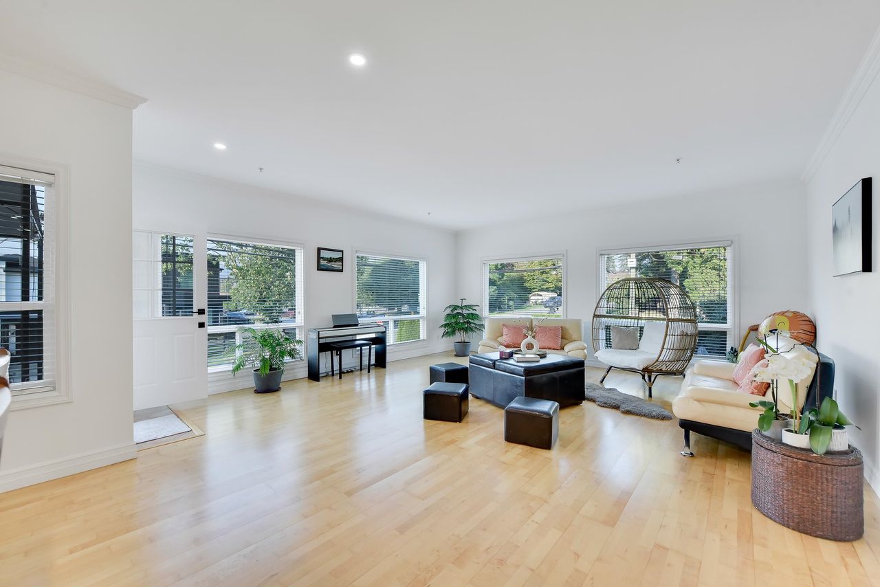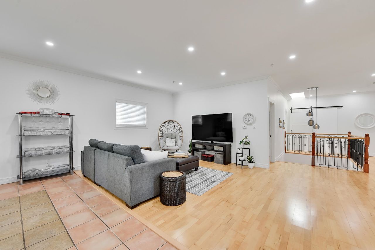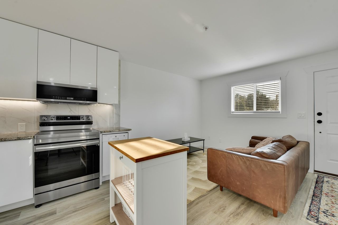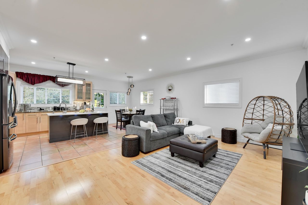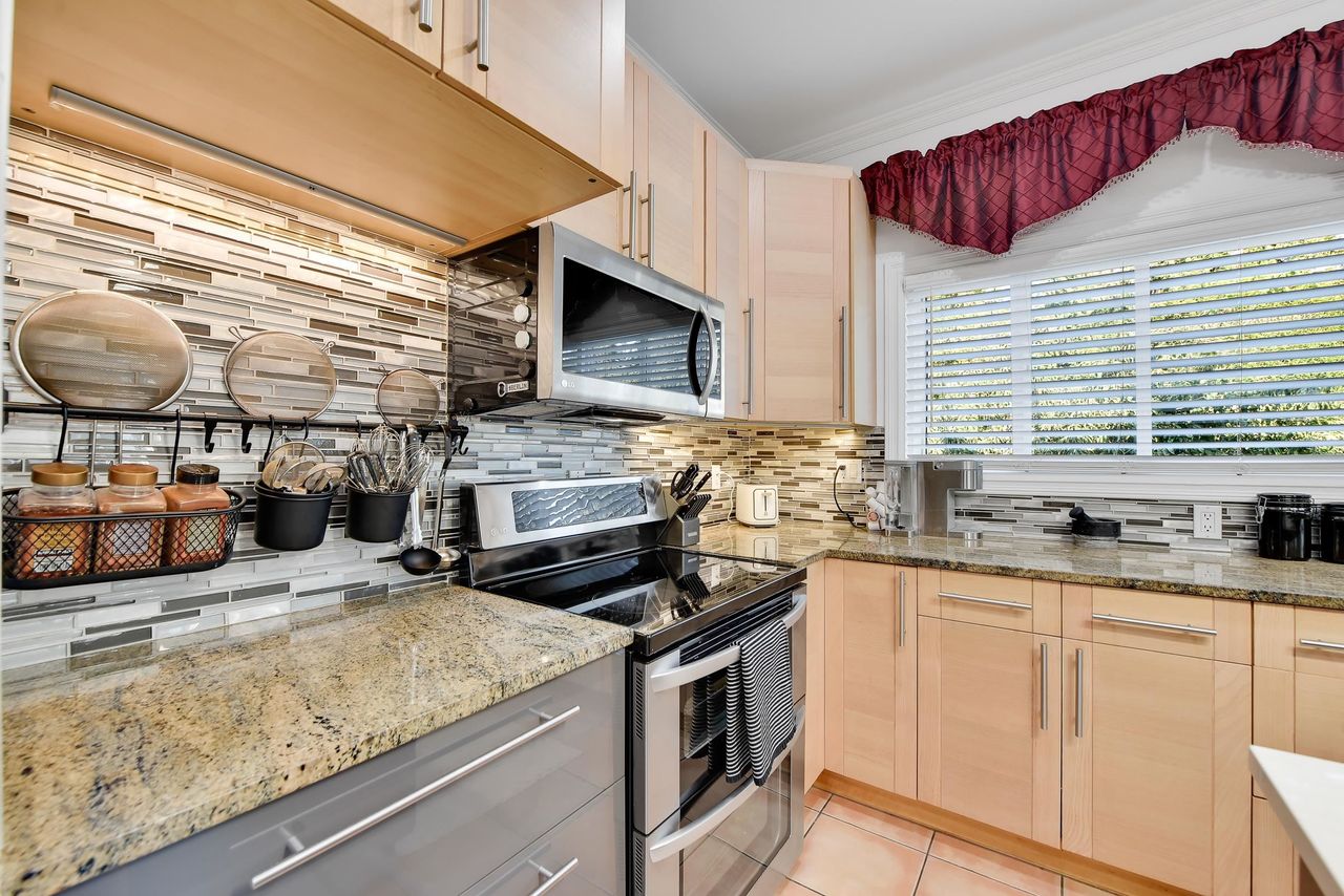 Immaculately clean home in a family-friendly neighbourhood combines modern comfort with timeless style sits on almost 7500sq. lot. The open concept kitchen, granite, stone counter boasts large windows that offer a scenic view of fruit trees and fenced yard. The bright living room features heated hardwood floor, a cozy two-sided fireplace, the door opens to the balcony w glass railing.Three bedrooms, three bathrooms including master with a smart toilet& a huge master closet & laundry. The main level offers two suites one & two bed. with their own entrance, laundry & bathrooms. Bed/Den/Flex with a big window for the parents, nanny, office. Energy efficient radiant floor heat, 5 yr.roof,A/C. Workshop in the back yard & garden, just need permit to build coach home, it is a bonus.